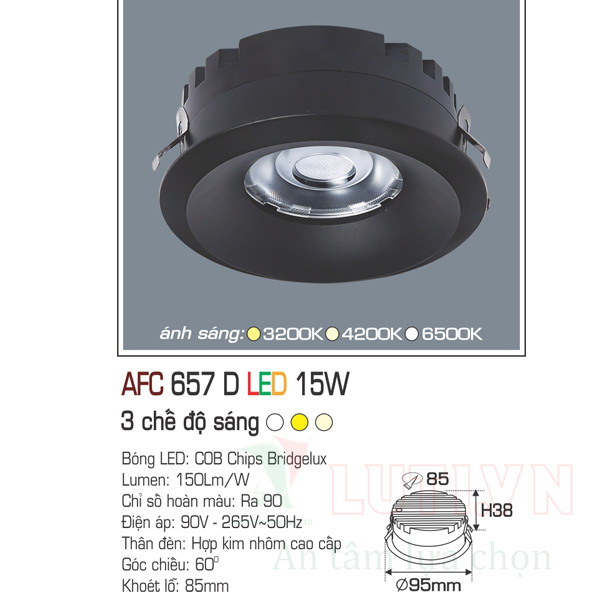 ĐÈN LED ÂM TRẦN TRÒN CHIẾU ĐIỂM VỎ ĐEN ANFACO AFC-657D-15W-3CD