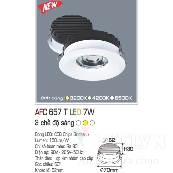 ĐÈN LED ÂM TRẦN CHIẾU ĐIỂM TRÒN VỎ TRẮNG ANFACO AFC-657T-7W-3CD