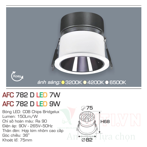 Đèn led âm trần Anfaco AFC-782D-9W