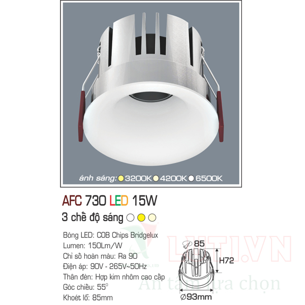 ĐÈN LED ÂM TRẦN TRÒN CHIẾU ĐIỂM ANFACO AFC-730-15W-3CD