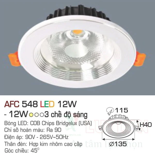 ĐÈN LED ÂM TRẦN TRÒN ANFACO AFC-548-12W-3CĐ