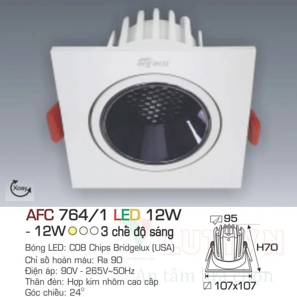 Đèn led Downlight Anfaco AFC-764/1-12W-3CĐ