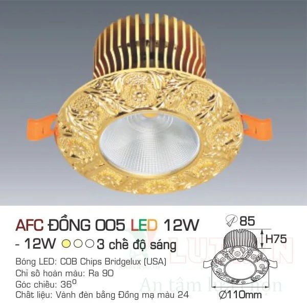 ĐÈN LED ÂM TRẦN TRÒN ANFACO AFC-Đồng 005-12W-3CĐ